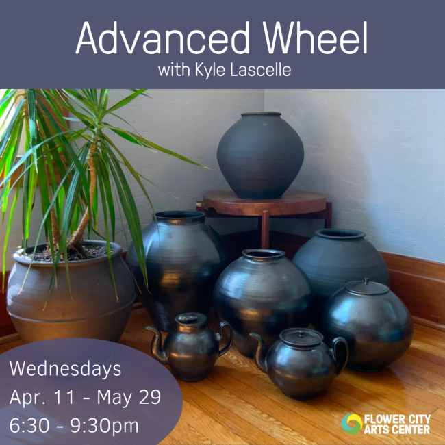 Advanced Wheel with Kyle Lascelle (@kylelascellepottery) on Wednesdays, April 10 - May 29 from 6:30 - 9:30pm.