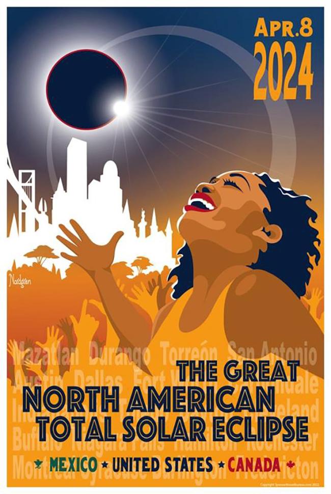 Nordgren designed the official 2024 eclipse posters for Rochester, and his 2017 eclipse artwork is in the collection of the Smithsonian Institution. The 30-poster exhibit, consisting of a variety of eclipse posters from 2017 and 2024 will be on view in Brockport before moving on to its final tour stop before the eclipse itself occurs in Western New York.