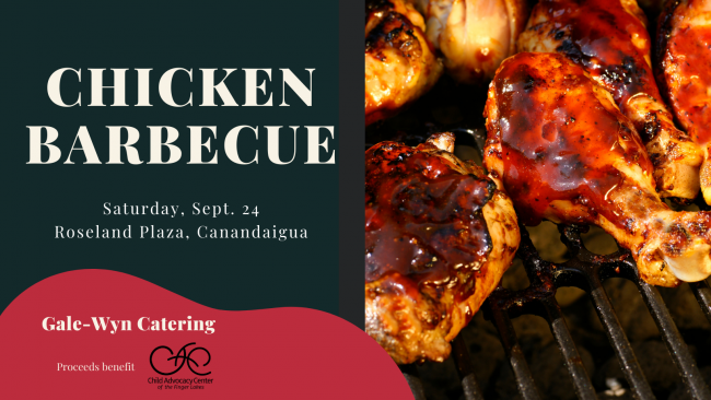 The Child Advocacy Center of the Finger Lakes will host a chicken barbecue fundraiser Sept. 24 at Roseland Plaza in Canandaigua. Meals cost $12 each, and pre-sale tickets are available.