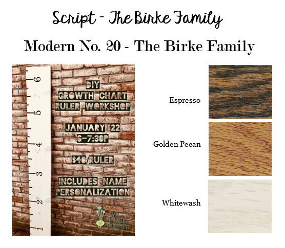 Looking for a stylish way to track your child’s growth through the years? We’re hosting this DIY workshop where you can create your own 6’ wooden ruler! We’ll teach you all of the steps needed to make this beautiful piece. Participants can choose from three different stain colors, pick your own paint colors for the lines and numbers, and includes your personalized name.