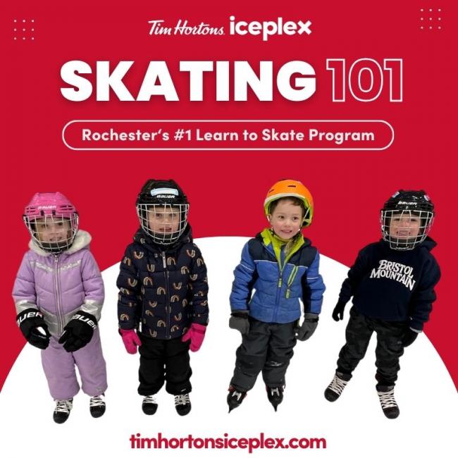 The Iceplex Skating 101 Program is the first step in teaching the fundamental skills of ice skating to anyone with a desire to play ice hockey, figure skate, or to skate recreationally. This 8-week program is designed for the true beginner, it meets once a week, and is taught by our world class skating instructional staff. Rental skates are provided to any participants who wish to use them, and this is done at no additional charge.