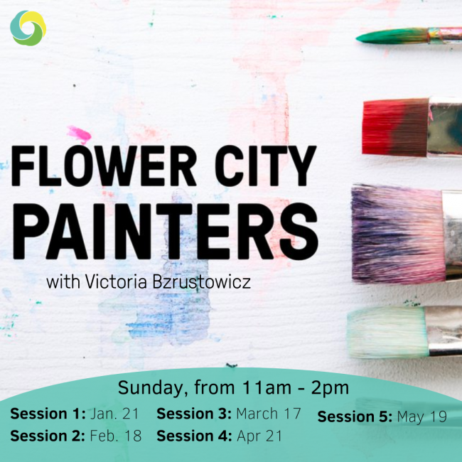 Flower City Painters with Victoria Brzustowicz (@creativevictoriab) from 11am - 2pm on Apr. 21 OR May 19.