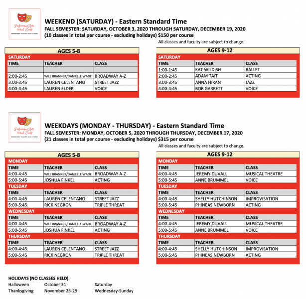 Register your child (5-12 years old) for a free trial class of our fall program!Saturday, Sep. 26th at 2:00pm EST (11:00am PST).The 45-minute class will include:15 minutes of Acting15 minutes of Singing15 minutes of Movement/DanceA brief Q&ASIGN UP HERE: https://forms.gle/6JFdnTJtgMgckQmEAFOR MORE INFO ABOUT OUR PROGRAM: www.BroadwayTeachesKids.com