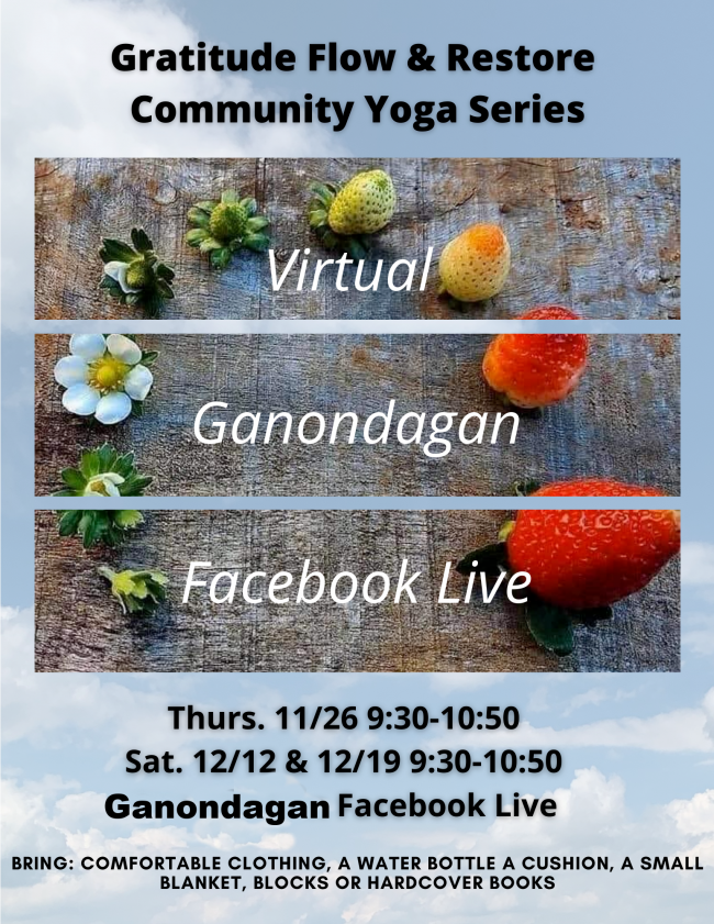 The third and last in a series of three Facebook Live yoga experiences focusing on Gratitude. They are interwoven with teachings from the Ohenton Kariwatehkwen ("Words That Come Before All Else," aka "The Thanksgiving Address"). Session 3: Dharma of the Good Mind.