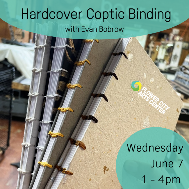 Hardcover Coptic Binding with Evan Bobrow (@ewb.studio) on Wednesday, June 7 from 1 - 4pm.