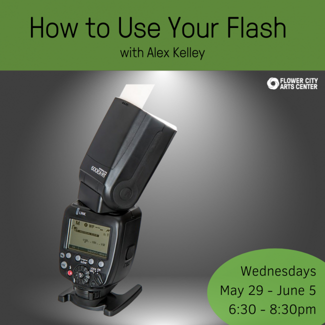 How to Use Your Flash with Alex Kelley (@alexkelleythecameraeye) on Wednesdays, May 29 - June 5 from 6:30 - 8:30pm. A speedlight, also known as a hot shoe flash, is a crucial and powerful camera accessory that can significantly enhance the lighting in your photographs. In this class, you will acquire the skills to use your flash effectively with your camera. The session includes examining students' flash units, trying out lighting styles, and discussing how each person can leverage their equipment to create various lighting effects. Students should come to class equipped with a camera (with a hot shoe), an SD card, a flash, and the respective manuals for both the camera and flash. Also, if you have triggers or modifiers, please bring them along. Don't forget to bring fully charged batteries! This class is great for those who want to expand on basic camera knowledge and is an excellent continuation for those who have completed Intro to Digital Photography.