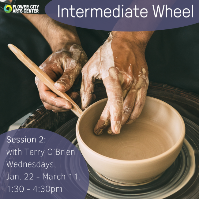 Intermediate Wheel with Terry O'Brien (@tmobrien.ceramics) on Mondays, Jan. 22 - Mar. 11 from 1:30 - 4:30pm.