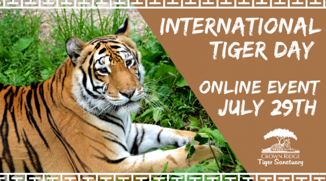 Due to the current COVID-19 crisis we are celebrating International Tiger Day a little differently this year. Instead of a big event at the sanctuary we will be celebrating with a day of online fundraising for our tigers! Throughout the day we will be having special live streams, giveaways, raffles and more! All to help support the tigers that call Crown Ridge Tiger Sanctuary home.
