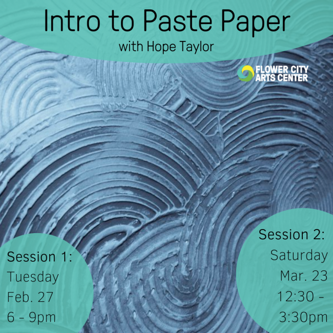 Intro to Paste Paper with Hope Taylor (@hopeseedstudio) on Tuesday, Feb. 27 from 6 - 9pm OR Saturday, Mar. 23 from 12:30 - 3:30pm.