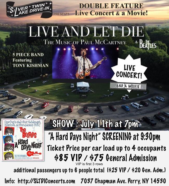 Join "Live and Let Die" for our first live performance since March! Live and Let Die: The Music of Paul McCartney at the Silver Lake - Drive In on July 11th!