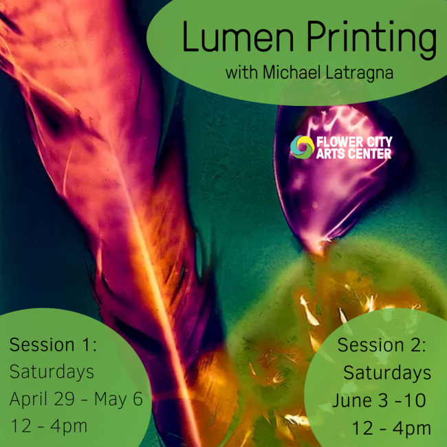 Lumen Printing with Michael Latragna on Saturdays, April 29 - May 6 OR June 3 -10 from 12 - 4pm.