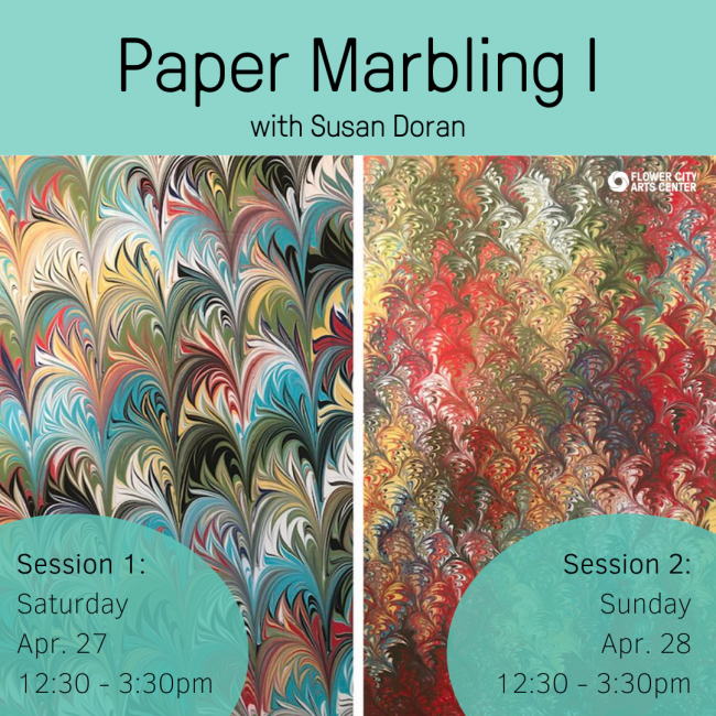 Paper Marbling I with Susan Doran (@belviderecornerstone) on Saturday, April 27 OR Sunday, April 28 from 12:30 - 3:30pm