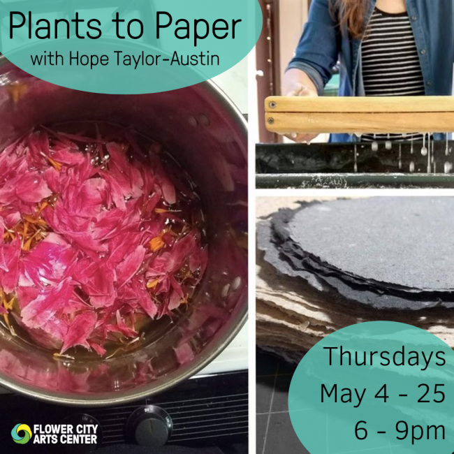 Plants to Paper with Hope Taylor (@hopeseedstudio) on Thursdays, May 4 - 25 from 6 - 9pm.