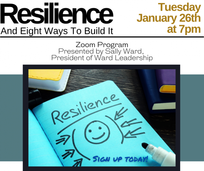 Resilience and Eight Ways to Build It: presented by Sally Ward, President of Ward Leadership on Tuesday, January 26th at 7:00 PM via Zoom. As the coronavirus pandemic drags on, many of us find ourselves experiencing COVID-19 fatigue and greater-than-usual stress. Join us for this interactive webinar and gain eight valuable skills to help withstand and bounce back from difficulties. You’ll leave empowered to weather the storms and grow from life’s unwelcome curve balls. Sally is a recognized professional management coach who helps leaders, teams and Boards identify and leverage strengths, improve communications and working relationships, and increase resilience to change and multiple demands. When you register online with your email address, you will receive a link to the Zoom meeting on the day of the event. Space is limited; please register in advance at Rushlibrary.org.