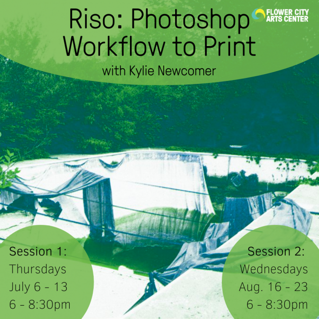 This two-day workshop is designed to teach artists with Photoshop experience how to use Photoshop to prepare their existing work to be printed on Flower City Arts Center’s Risograph printer! Students will print an edition of 10, 3 - color 11”x17” prints. Choose from our selection of 7 Riso inks! Included: $10 materials fee.