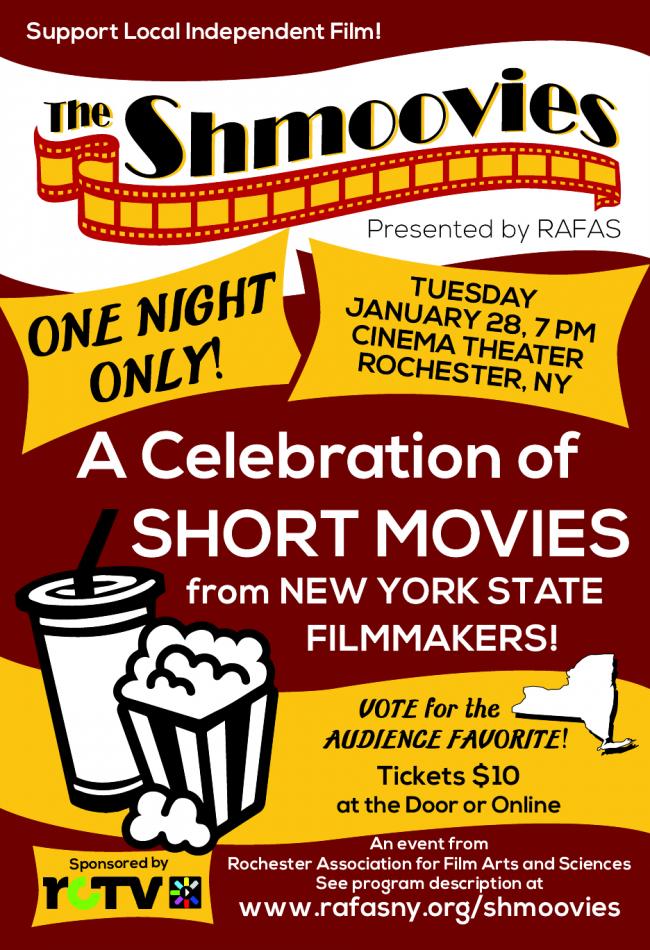 Join RAFAS (Rochester Association of Film Arts & Sciences) at the Cinema Theater on Tuesday, January 28 for an evening of short films created by talented filmmakers from New York State.