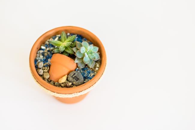 Create a succulent arrangement within an arrangement! In this class, students fill in the area above a small pre-planted pot with succulents so, when you look from above, you’ll see what looks like a floral arrangement made of succulents. Instruction and all materials are provided; students decorate the pot, plant and arrange their choice of three succulents.