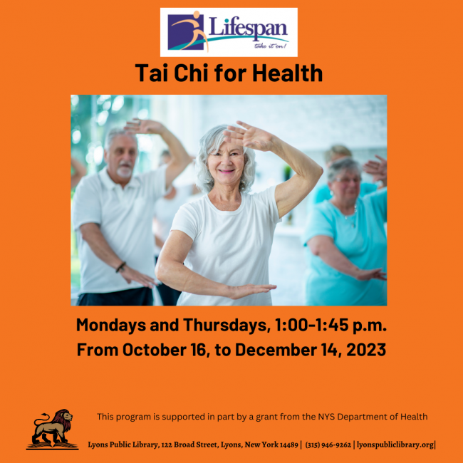 Wendy Fambro from Lifespan Rochester is holding eight weeks of tai chi classes for caregivers and older adults. People of all abilities are welcome to participate in learning something new while improving their balance, strength, flexibility, and mental wellbeing. To register please follow the registration link https://conta.cc/3EkpS3d. For questions please call Wendy at (585) 244-8400, ext. 130.
